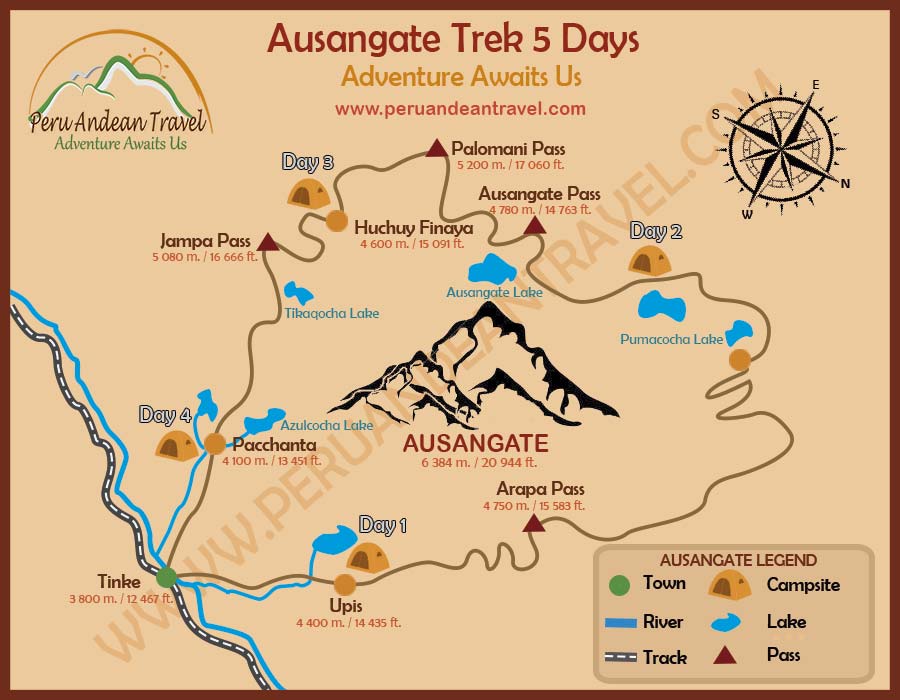 We start our day with breakfast in Upis, before begining our ascent up the first part of the mountain, the Arapa Pass at 4,850m. After reaching this pass we eat lunch and begin the climb to the second pass, called Jatun Pucaqocha Pass (4,850m).